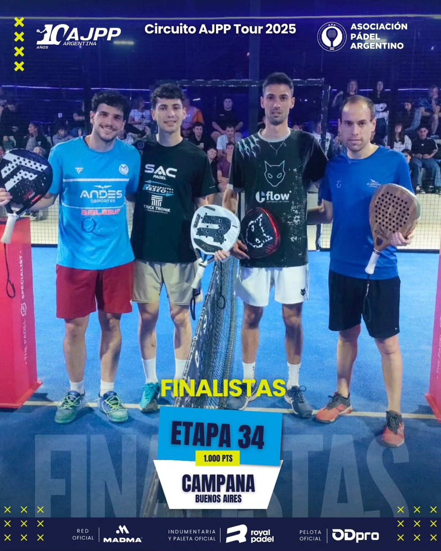 La Final, en la Etapa 34 de la Asociación de Jugadores Profesionales de Padel 1000 puntos que se llevo a cabo en Campana Buenos Aires tuvo como campeones a Thiago Mayerna y Francisco Britos, siendo subcampeones Nicolas De Marco y Leonel Videla.