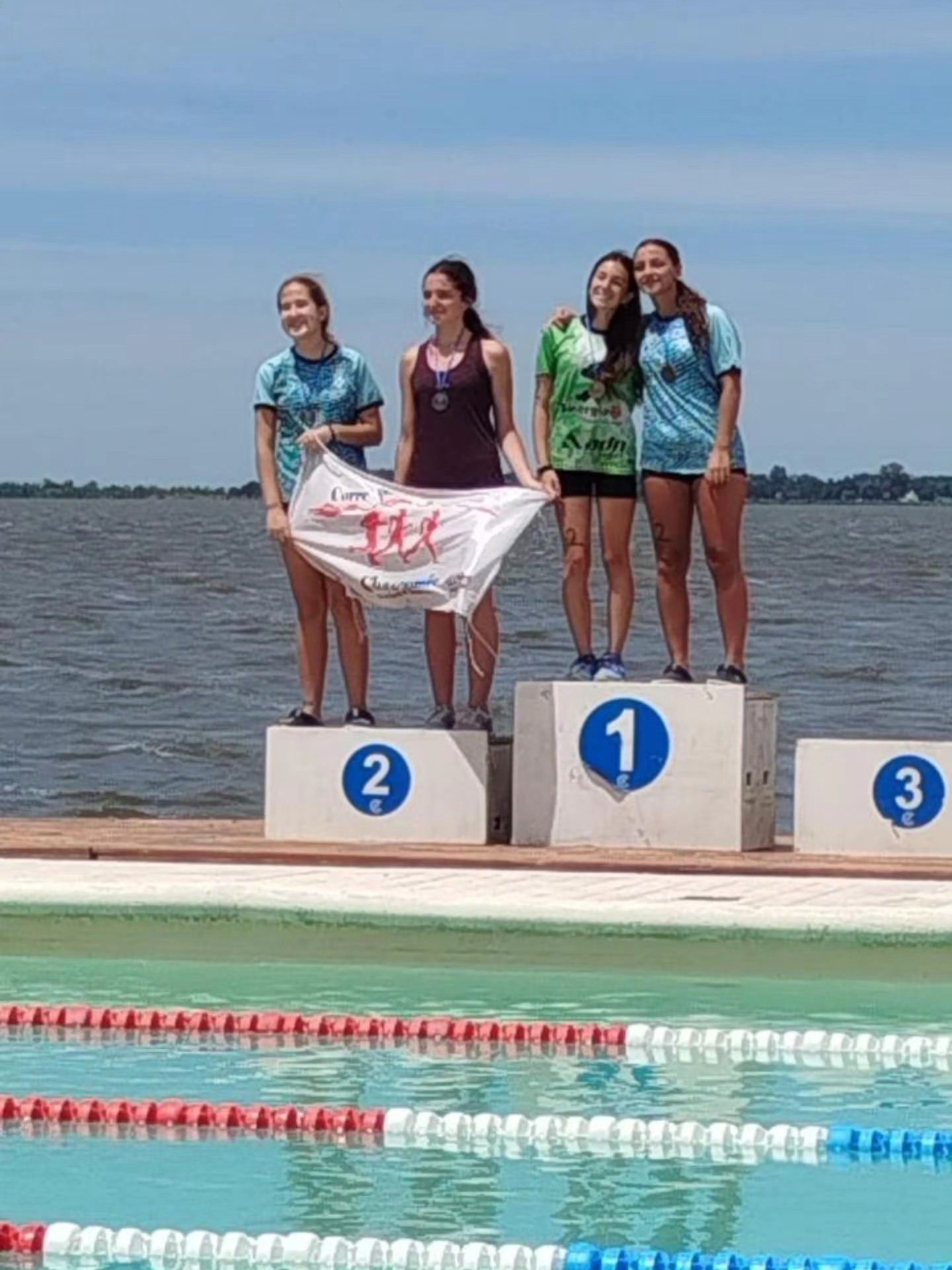 Las jóvenes deportistas locales Eugenia Dufourq y Juana Girard se impusieron en la general y categoría de la posta femenina del Acuatlon realizado el domingo desde el Club de Regatas.