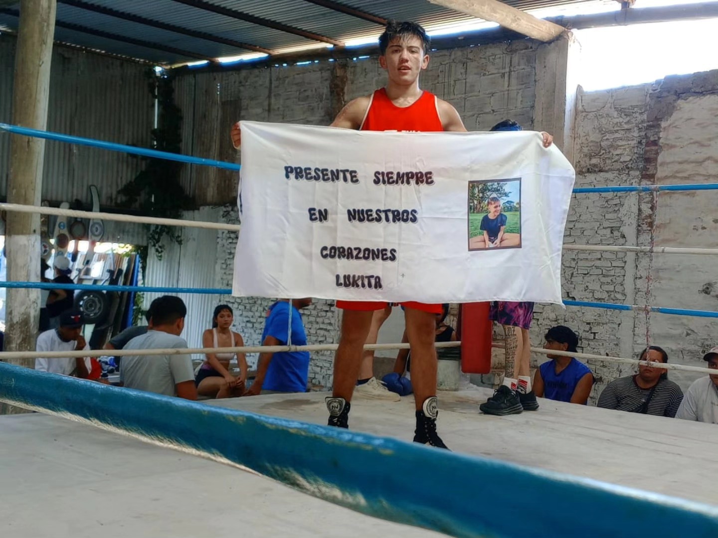 El joven boxeador chascomunense Martino Faga peleó en Glew junto a compañeros de Corto Box y del gimnasio Leona Box.