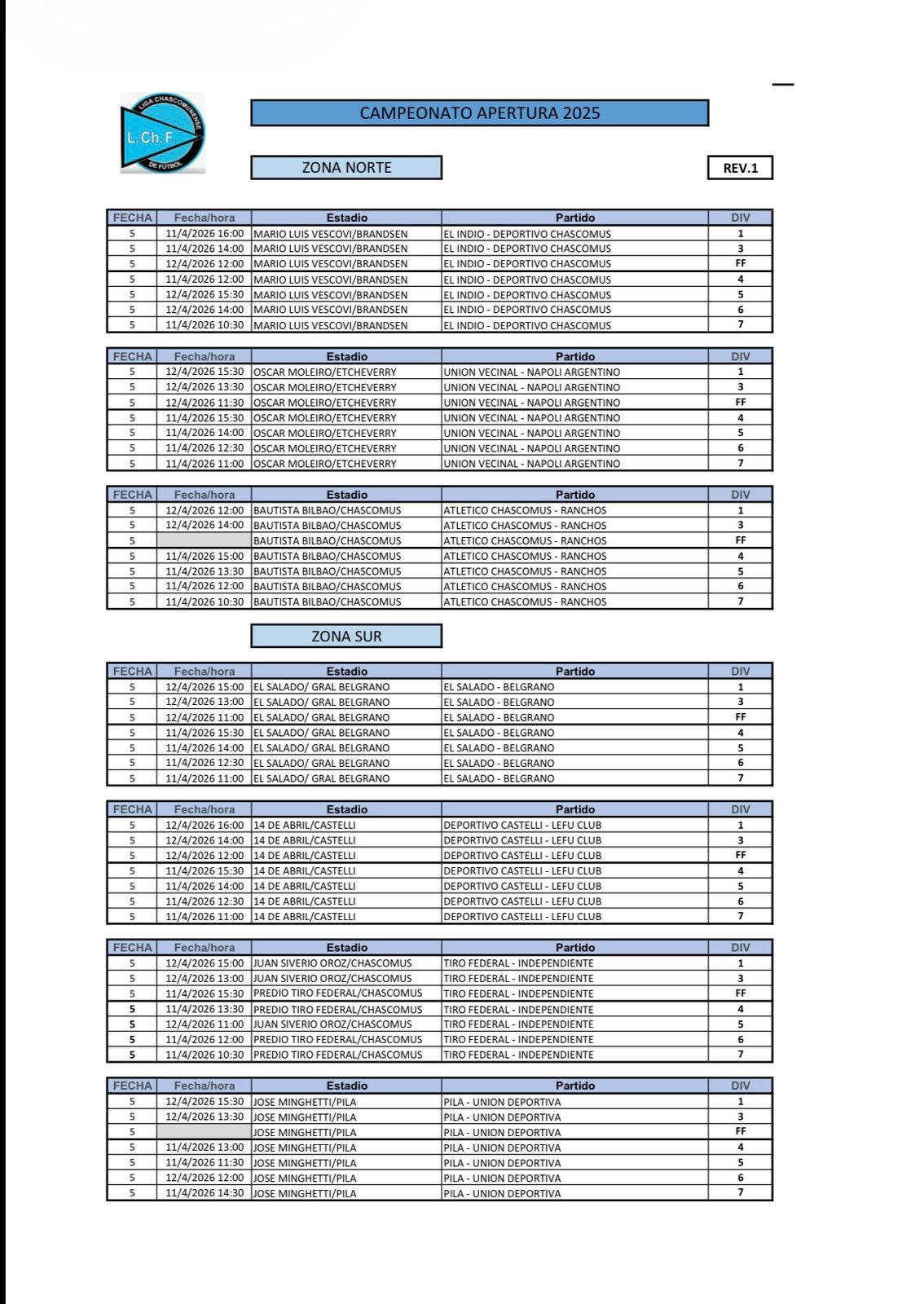 LA 5ª FECHA ARRANCA EL SABADO EN CNEL BRANDSEN Y HABRÁ OTRO DOMINGO DOBLE EN CHASCOMÚS