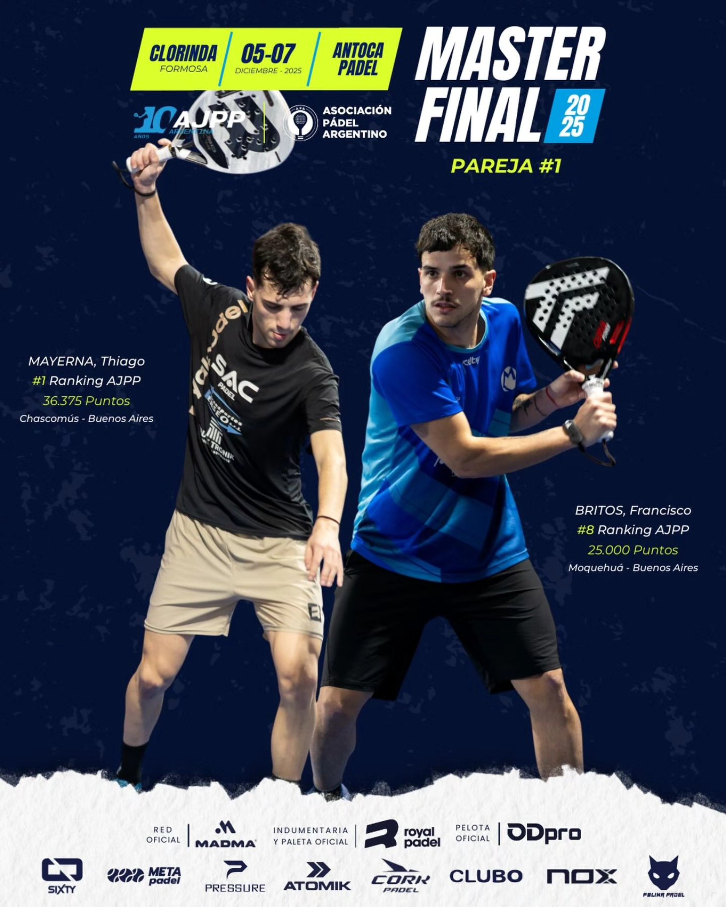 Los chascomunenses Thiago Mayerna y Leo Videla integran la pareja 1 y 2 del Mรกster de la AJPP argentina 2025 a jugarse desde el hoy viernes en Clorinda, Formosa.